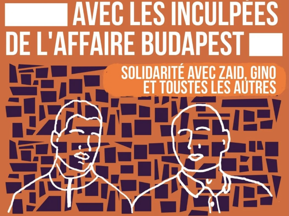 Mercredi 15 avril, nos camarades Zaid et Gino comparaîtront de nouveau devant la Cour d’Appel de Paris, à 13h30 et à 16h. Le comité Solidarité Budapest appelle à les soutenir.