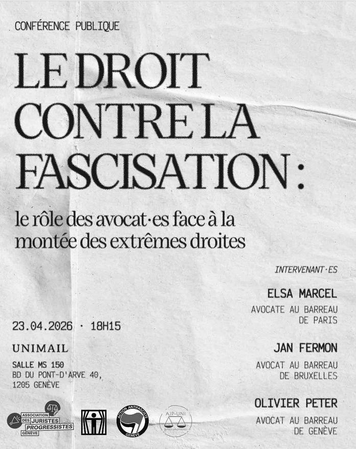 Genève23/04 : Le droit contre la fascisation : le rôle des avocat·es face à la montée des extrêmes droites