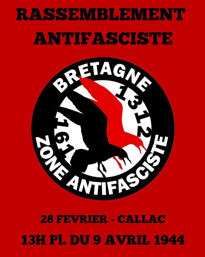 Ne le laissons pas faire. Rassemblons nous le 28 février à 13 heures place du 9 avril 1944 à Callac, pour une Bretagne antifasciste ouverte et Solidaire.