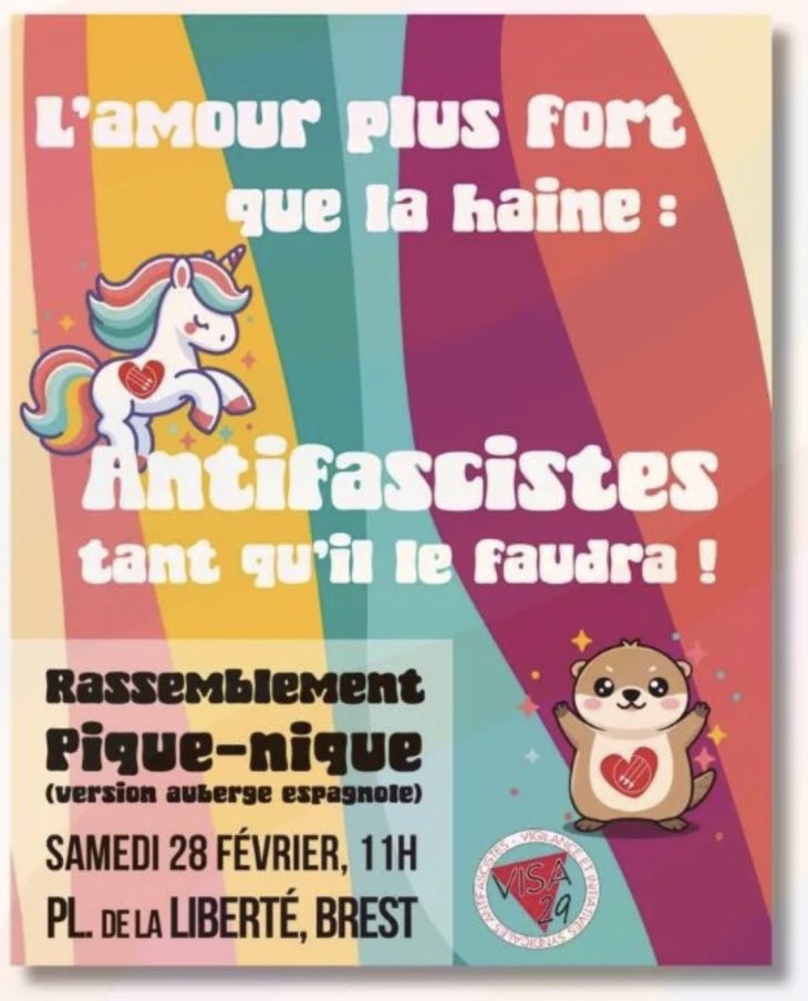 Communiqué de presse de Visa Finistère : Rassemblement et pique-nique antifasciste - Samedi 28 février – 11h Place de la Liberté.
