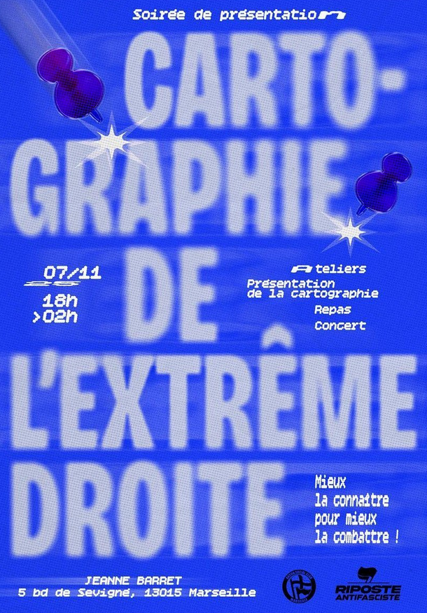 Afin de découvrir un nouvel outil pour combattre l’extrême droite à Aix-Marseille, soirée avec présentation de la cartographie, atelier, repas, concert rap et dj set de 18h à 2h.