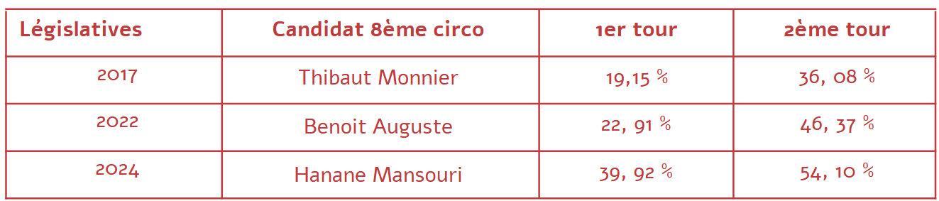 Benoit Auguste, militant lyonnais du RN, est tête de liste aux régionales dans l’Allier en 2023. Elu comme conseiller régional, il se présente à Vienne en 2022. Suite à l’alliance avec Ciotti, il glisse sur la 7ème circonscription de l’Isère, celle de la Côte-Saint-André en 2024. Hanane Mansouri [1] qui le remplace est une inconnue à Vienne. Elle est pourtant élue députée. La morale de l’histoire : des candidats interchangeables, sans implantation durable. Le FN/RN est une marque déposée. Quel que soit le candidat, on ramasse des voix à la pelle ! Ainsi, en 2022, sûr de son ancrage local et de son expérience (responsable départemental RN du Jura en 2015, conseiller régional de l’Allier en 2016, puis directeur de l’ISSEP à Lyon 2 tout en étant en plus responsable départemental RN de l’Isère), Thibaut Monnier se présente aux législatives. Et là, fiasco total : il obtient 4,23 % des voix. Que s’est-il passé ? En 2020, il a rejoint Reconquête. Ce n’est pas son charisme personnel qui lui avait assuré son résultat de 2017, mais l’estampille RN.