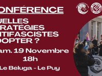 Conférence organisée par le Réseau Antifascistes Haute-Loire avec comme intervenants la Jeune Garde de Lyon, samedi 19 novembre à 18h, au Béluga (12 avenue Foch, Le Puy-en-Velay).