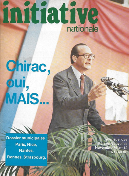 En avril 1974, après la mort du président Georges Pompidou, les militants de « Faire Front », futurs fondateurs quelques mois après du « Parti des forces nouvelles », vont avoir, pour le jeune et alors moderne candidat de droite Valery Giscard d’Estaing « les yeux de Chimène » et vont s’investir pleinement dans la bataille de sa campagne présidentielle victorieuse, contre le candidat de gauche François Mitterrand. « Certains parlent même de dettes épongées [par l’équipe de VGE, NDA] et de prestations de service d’ordre de l’ordre de 180 000 francs (...) . L’argent est certes le moteur de la guerre, mais il y a aussi des raisons politiques à cette participation. Pour une partie de l’extrême droite, Giscard d’Estaing sonne le glas du gaullisme et la revanche sur les fossoyeurs de l’Algérie française » [8]. Pas très cohérents, les dirigeants du PFN ont ensuite soutenu son rival Jacques Chirac et son tout jeune RPR, « un vivier pour une droite radicale et nationale » selon eux, à partir de décembre 1976.
