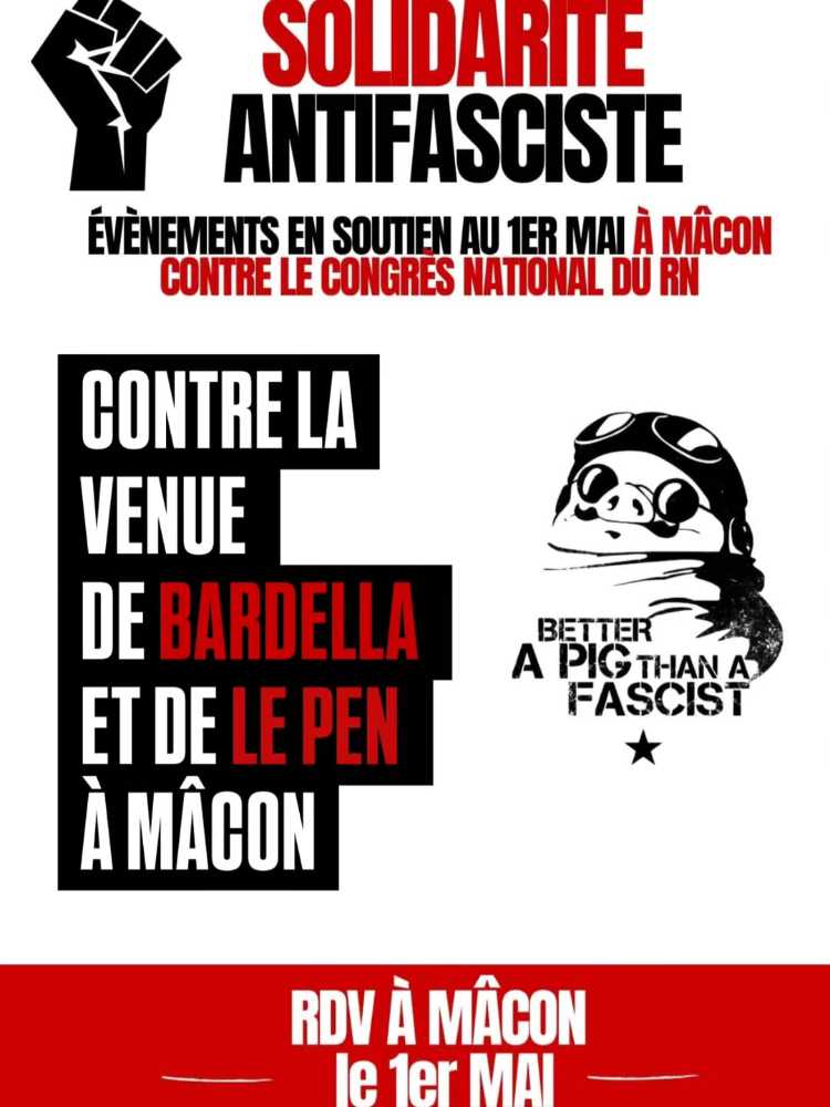 Fin janvier 2026, la presse locale a annoncé la tenue du 19e congrès national du Rassemblement National à Mâcon, au Spot, les 1, 2 et 3 mai 2026. Le congrès national du RN rassemble des milliers de participant·es. De nombreux collectifs et organisations progressistes, dont l’Action Antifasciste 01, appellent à une riposte populaire et antifasciste massive contre sa tenue.