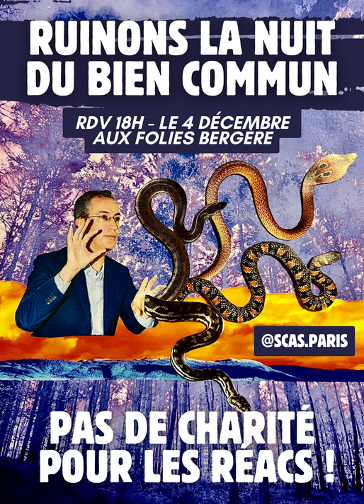 La Nuit du Bien Commun de Paris doit se dérouler le 4 décembre aux Folies Bergère, un rassemblement est organisé face à cette soirée qui permet de financer des associations d’extrême droite.
