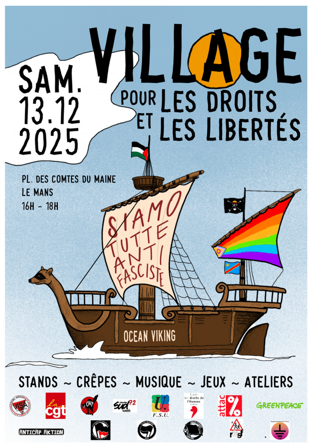 – de 16h à 18h : Village pour les Droits et les Libertés sur la Place des comtes du Maine (https://sarthe.demosphere.net/rv/6596)