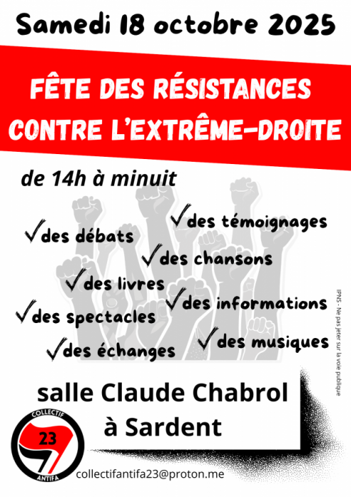 Samedi prochain, le collectif antifa23 nous invite à nous rassembler contre les idées d’extrême droite.