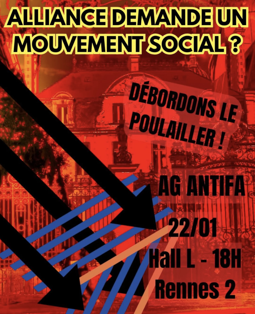 L’AG antifasciste de Rennes donne rendez-vous le jeudi 22/01 à 18h devant le hall L de R2 pour s’organiser contre le "mouvement citoyen" d’Alliance.