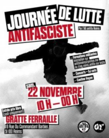 L’AG antifa Reims revient le samedi 22 novembre pour une journée de lutte antifasciste au @gratteferraille