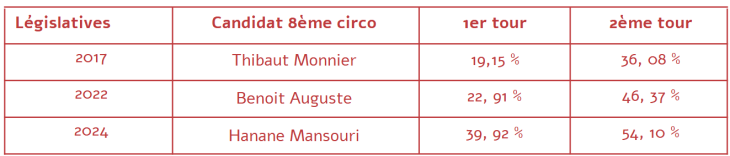 Benoit Auguste, militant lyonnais du RN, est tête de liste aux régionales dans l’Allier en 2023. Elu comme conseiller régional, il se présente à Vienne en 2022. Suite à l’alliance avec Ciotti, il glisse sur la 7ème circonscription de l’Isère, celle de la Côte-Saint-André en 2024. Hanane Mansouri [1] qui le remplace est une inconnue à Vienne. Elle est pourtant élue députée. La morale de l’histoire : des candidats interchangeables, sans implantation durable. Le FN/RN est une marque déposée. Quel que soit le candidat, on ramasse des voix à la pelle ! Ainsi, en 2022, sûr de son ancrage local et de son expérience (responsable départemental RN du Jura en 2015, conseiller régional de l’Allier en 2016, puis directeur de l’ISSEP à Lyon 2 tout en étant en plus responsable départemental RN de l’Isère), Thibaut Monnier se présente aux législatives. Et là, fiasco total : il obtient 4,23 % des voix. Que s’est-il passé ? En 2020, il a rejoint Reconquête. Ce n’est pas son charisme personnel qui lui avait assuré son résultat de 2017, mais l’estampille RN.