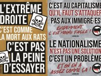 Notre nouvel autocollant internationaliste a été dessiné par l’illustratrice Hélène Aldeguer.