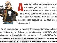 En attendant que nous livrions notre propre analyse de la panique morale de droit qui a pris notre jeu Fachorama pour prétexte, voici le communiqué de soutien qu’a publie le Syndicat Interprofessionnel de la Presse, des Médias, de la Culture et du Spectacle - CNT. Merci à elles et eux ! (…)