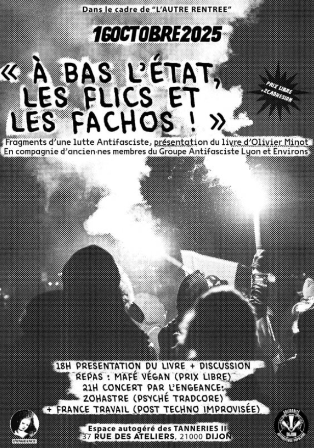 Dans le cadre de l’évènement L’autre Rentrée, présentation et discussion autour du livre « À bas l’état, les flics et les fachos - Fragments d’une lutte Antifasciste ».